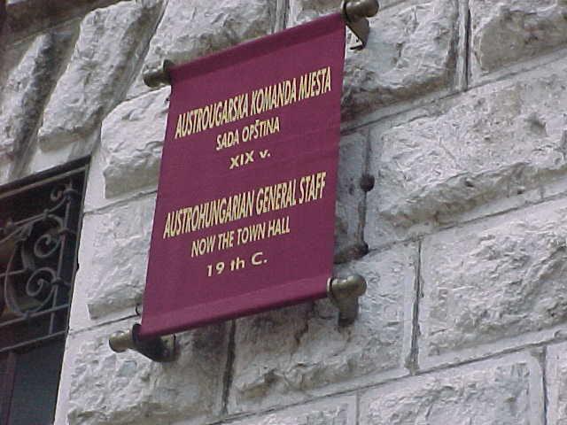 次に見つけた標識には「AUSTROHUNGARIAN GENERAL STAFF 19C NOW THE TO TOWN HALL《と書かれていた。19世紀オーストリアに統治されていた頃、コトルの統監の事務所として用いられていた建物が、現在市役所として利用されているのだ。