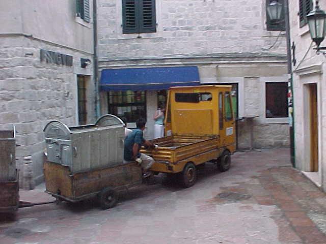コトルの道は石畳作りでくねくねしており、道幅も一定ではなく、人がすれ違えるほどのかなり細い箇所もいくつかあった。そのため、このようなごみの収集方法をもちいているのであろう。だが、作業はかなり困難であるように思えた。