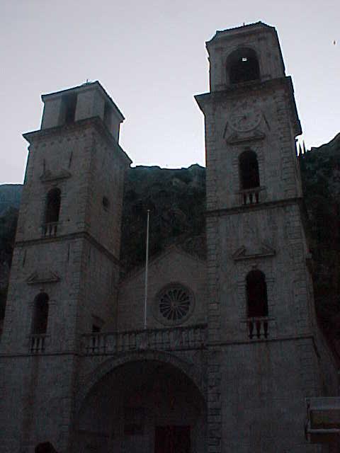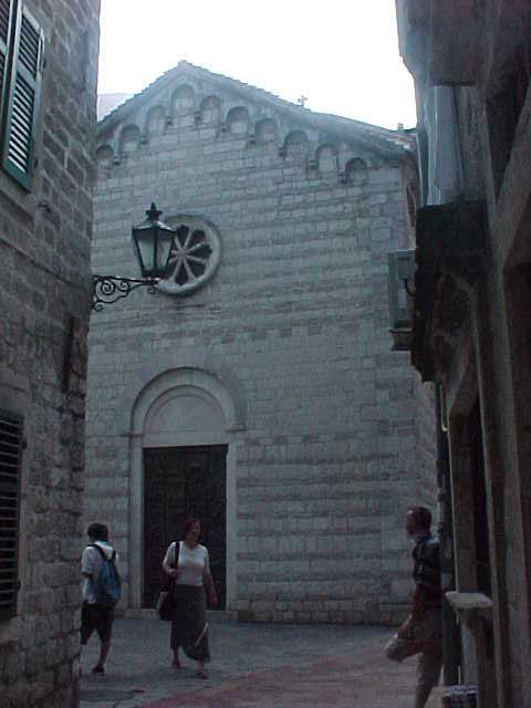 この教会の向かいに、2004年11月にアメリカがコトルの都市修復を援助をしたことを示す看板があった。アメリカがこのような小さなところに、しかも最近援助したというのは驚きであった。
