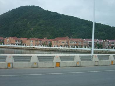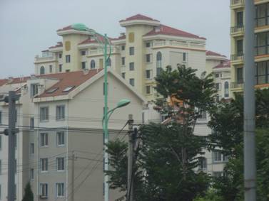 旅順口区に近づくにつれ、多くの高層マンションが立ち並ぶようになった。Richard氏いわく、旅順口区では、開放が進むにつれて、住宅や土地の値段が上がっているそうだ。土地1uの価格は1000元であったのが、3000〜4000元まで上昇しているという。8階〜15階建て位の縦長に建てられたマンションが至るところに建設中で、すでに出来上がっているものもある。これらのマンションは巡検で各所に見られた“社会主義住宅”とは明らかに異なり、装飾面にもお金がかけられている。Richard氏いわく、都市住民のみならず農民の一部もかなり豊かになり、住宅に対して投資をする者が現れてきた。彼らの住む家も、平屋から3階建ての建物に変わるものが増えてきたそうだ。街頭広告の中には不動産関連の広告が多く、後に発見した、旅順駅前にあった広告には1uあたり4350元と書いてあり、私たちも土地価格の値上がりを確認できた。中国の不動産バブルが高まり、戦後は軍施設と農村しかなかった旅順口区が、新しい都市発展の局面に入っていることを感じた。