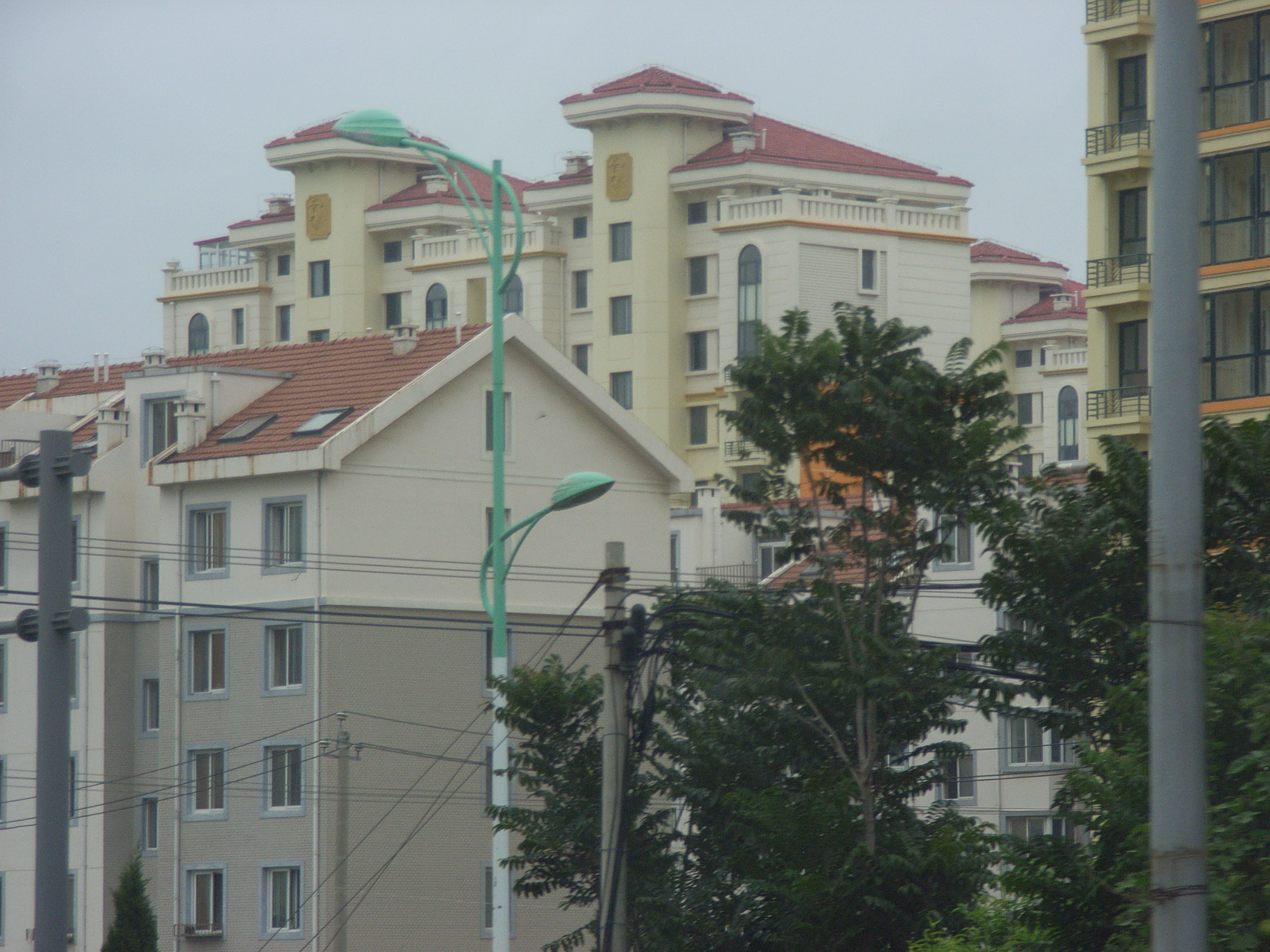 201号線の街路樹がとても整備されていることに驚いた。大きな木はないが、1、2mくらいまでの高さの木が数種類植えられていた。しばらくすると、右手に沿って走るトラムが現れた。不動産開発と同時に、郊外の交通も計画的に整備されている。大連では、日本が1905年に作った路面電車が戦後も大部分廃止されずに残り、それがさらに新しい市街地に延長されているのである。