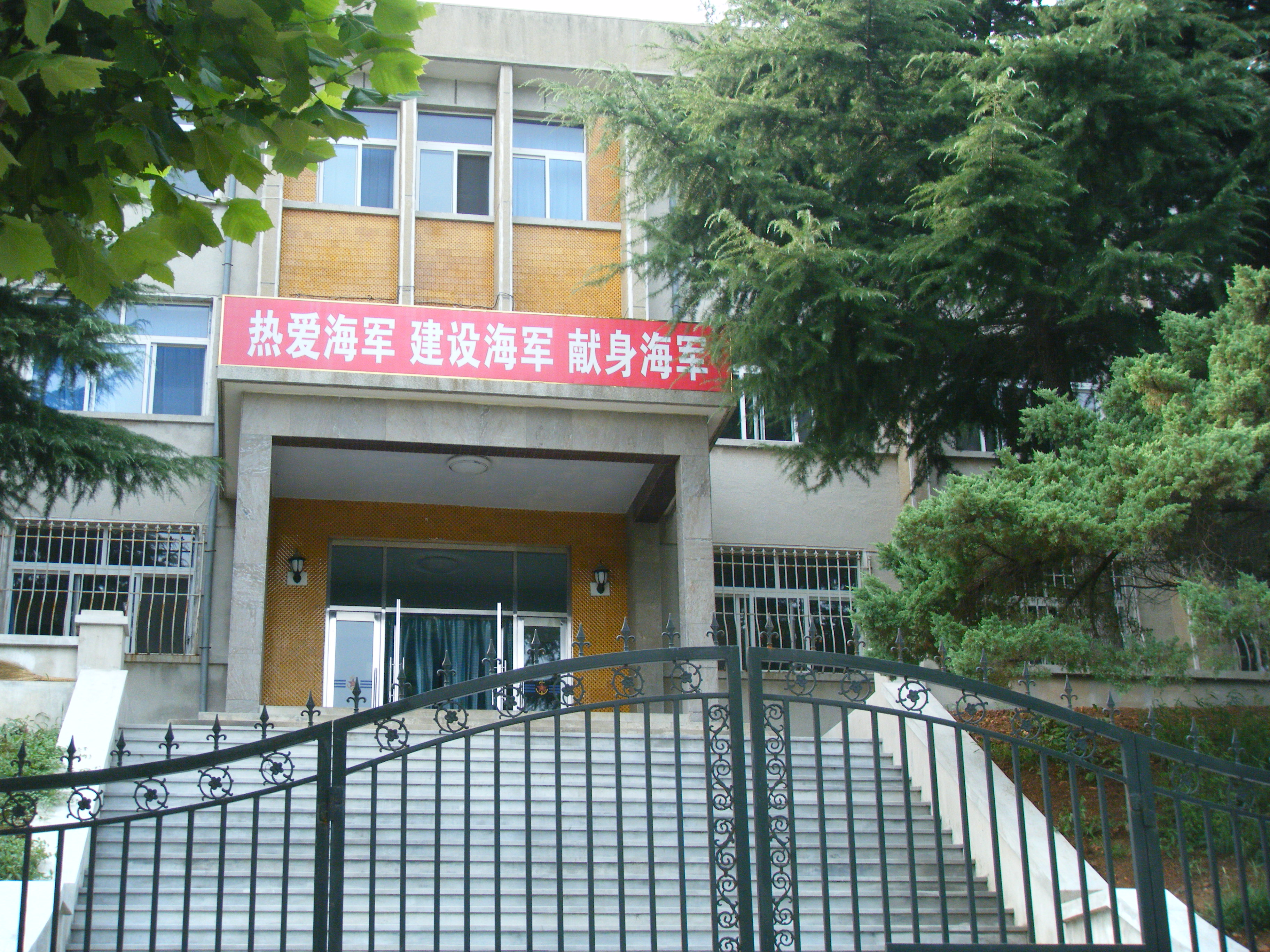 人気のない旧常盤町のゆるやかな坂を登っていくと、海軍の施設があった。中華人民共和国になってから建てられたこの建物は、周りの日本人住宅と比較すると、