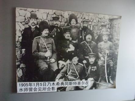 ここは、塀に囲まれた建物が一軒あるだけである。日露戦争で二〇三高地をはじめとして、激戦を交わした後、1905年1月2日に、野戦病棟として使われていた農家の建物にて乃木希典とロシアの将軍ステッセルが会見し、ロシアが公式に降伏した。この水師営の会見は、日本軍の栄光の歴史として、戦前の日本で語り継がれることとなり、この会見所は、日本植民地時代の「戦跡めぐり」ではずすことができない有力なツーリストスポットとなった。100年間で統治者が日本から中国へと変わっても、観光地としての機能は変わらない。しかしそれは、日本軍国主義の栄光を賛美した場所から、糾弾する場所へと変わっていた。