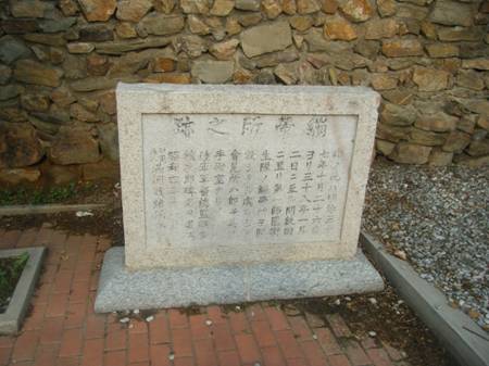 繃帯所の跡 此ノ地ハ明治三十七年十月二十六日ヨリ三十八年一月二日二至ル間数回二亘リ第一師團衛生隊ノ繃帯所ノ開設シタル處ニシテ會見所ハ郎チ其ノ手術室ナリ。 陸軍軍醫總監鶴田釘禎次郎碑名ヲ書ス 昭和四年十一月 財團法人満洲戦績保存会 |