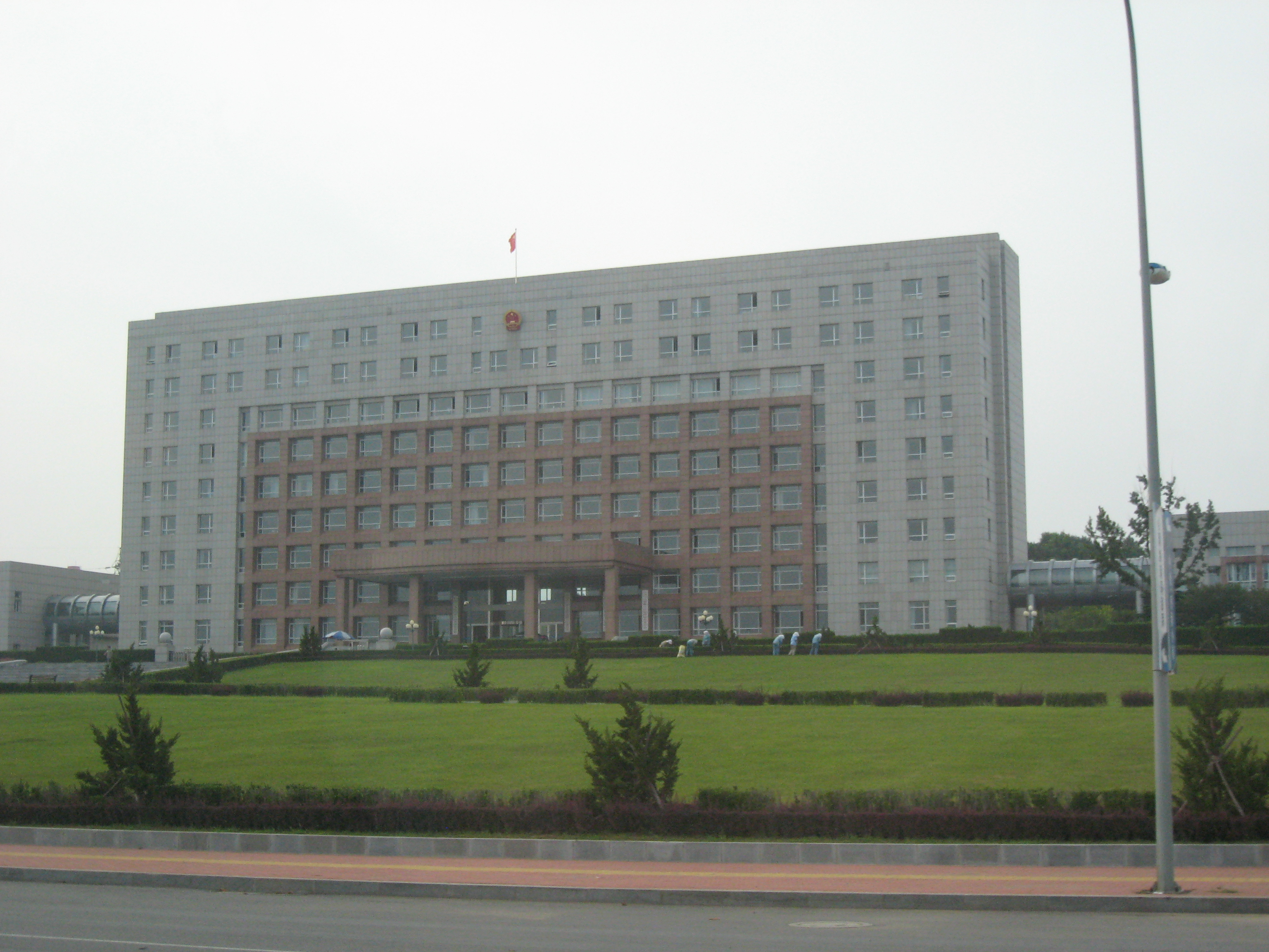 機能のみを重視した建物に見える。だが、入り口までの20段以上ある階段は人民解放軍の威厳を示していた。