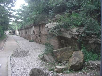 そして、日本兵は堀を降りると、日本兵は背後からソ連軍の攻撃を受けることとなる。壁には、両軍の戦争の激しさを示す銃痕が無数に残っている。堀に入った日本兵が、ロシア軍から一斉攻撃を受けた跡だと考えられる。