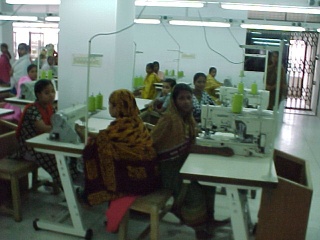 この工場の従業員は、若い女性が多いが、男の労働者もいる。縫製などは女性が主に行っている。みなサリーを着て作業している。型紙、裁断、アイロンがけ等の力仕事は男性労働者が行っていた。採用年齢は18〜35歳ということだが、明らかにそれよりも若い(12〜3歳くらいであろうか)、或いは年をとった女性労働者が働いていた。既婚者の割合は約60%。農村出身の人も多いが、ダッカに出てきて皆近所に自分で住んでおり、その人達用のバスなどの交通手段は用意していない。在職期間は平均2〜3年で、より高賃金を求めて転職し、流動的な労働市場を形成している。これは、昇進がないこと、募集広告がこの地域に多くはってあり、工場が近接しているため、新しい職場を見つけるのが容易であるという理由による。張り紙は、MEDONA GARMENTSの入り口にも張ってあった。毎日面接をしており、他の工場での経験や技術があるかを尋ねている。労働市場が極めて流動的であるあたりも、1980年代初期までの香港の状況と大変似ている。 日本では5S(整理、整頓、清掃、清潔、躾)が強調されるが、そのような教育をしているのか聞いてみたところ、教育レベルが日本とは違うため、知っていても導入は難しいとのことだった。