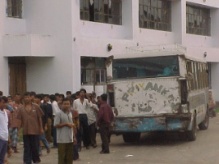橋を渡って再び車に乗り、ジェソールに向かう。しかし、ここで事故がおきた。リキシャーを追い越した私達のバンの後部が、対向するトラックに接触したのである。パリン、と音がした。しかし、このくらいの事故は日常茶飯事なのか、お互い何を言い合うでもなく、そのまま走りつづける。あとで見てみたら、後ろのライトが壊れていた。幸い、我々には何の被害もなかったが、ライトの修理代に5000タカかかるといっていた。