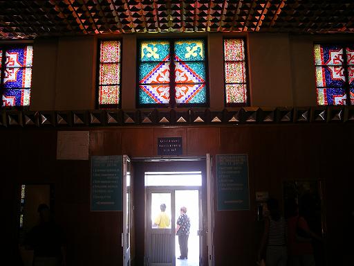 作業が済むまでの間、客車に残ることもできる。車内で寝ている客もいるが、外に出て、駅舎内のレストランで食事、あるいは売店で買い物などもできた。同じコンパートメントの韓国系の男性は、旅慣れた様子で、駅の近くにあるレストランに食事に行った。売店では新聞、アルコール類、その他こまごましたものが売られていた。チョコレートを買ってみたところ、原則としてカザフテンゲでの支払いだが、中国の人民元も良いレート(1元=18テンゲ)で使用可能であった。通貨両替所は駅舎内になかったが、有料トイレがあり、中国元1元で使用可能であった。これに対し、中国ではどこでも、カザフテンゲなど相手にもされない。