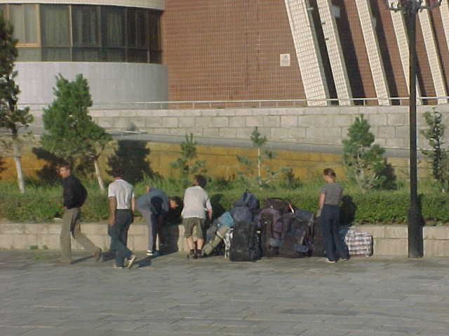 北京時間で午前8時15分に中国側の国境、阿拉山口に列車は到着した。駅に停車すると、まもなく8人の出国管理官が列車に乗り込んで来て、コンパートメントごとに出国の手続きを始めた。出国カードを書き、パスポートのチェック、ランダムな荷物のチェックが行われた。本・書類・新聞などを入念にチェックしていたようであった。