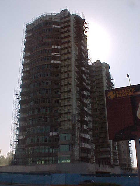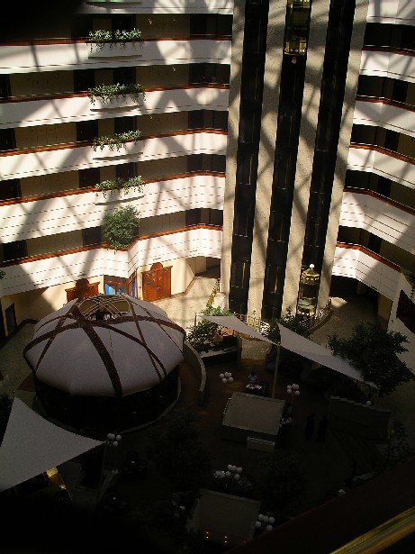 次の目的地は、ハイヤットホテル(Hyatt Regency)にある三井物産のアルマティ事務所である。広大な緑の敷地に建つハイヤットホテルは街の南部、大統領府などの近くにある。アメリカ資本で建設された新しい高層ビルは、ホテルとオフィスのツインタワーとなっている。ホテルには多くの外国人が宿泊しているようで、スーツ姿のビジネスマンも多く見うけられたが、現地人はほとんど見られなかった。ホテルの敷地の周りには旧ソ連時代の公営住宅が立ち並んでいるが、このハイヤットホテルは現地人の生活から切り離されたものとなっており、それは、一種の外国人居住区の様相を呈していた。
