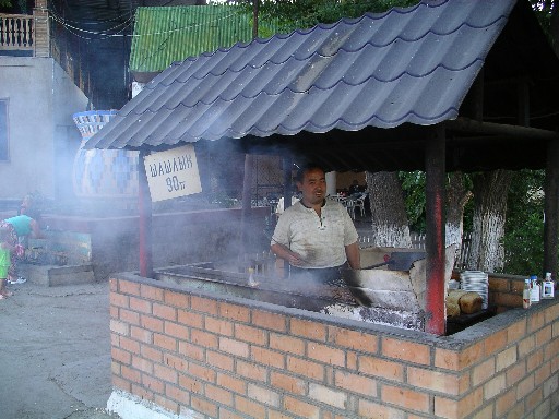 途中、緩やかな峠を越えた。その峠には所々に石像が配置してあったが、何の為にあるのかはわからなかった。小さいモスクのようなお墓もある。途中、休憩のため、ドライブインのようなレストランに寄った。そこのトイレはトビラがなく、50センチほどの高さの仕切りが入っているだけだった。ここで食べたケバブがカザフスタンに入って初めて食べたケバブだった。値段は90テンゲ。新彊と違うのは塩味であるというところで、私はスパイシーな新彊ケバブよりもシンプルなこのケバブの方が気に入った。