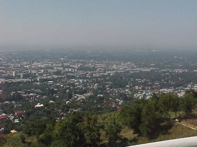 その後、市内の南東に位置するコクトゥーベという丘に登った。コクトゥーベは海外からの観光客だけでなく、地元の人々も訪れるレジャースポットである。ゴンドラを使って上り(料金100テンゲ、80円)、頂上からはアルマティ市内が一望できた。頂上から見て初めてわかったのだが、アルマティ市は南から北に向かってやや傾斜している。丘のふもとはスプロール状の道路網をもつ戸建て住宅地になっていた。市内には、すぐに目を引くような高層ビルが全く存在していない。市周辺にはステップ、そして一部砂漠が広がり、どこまでも続く地平線が印象的であった。