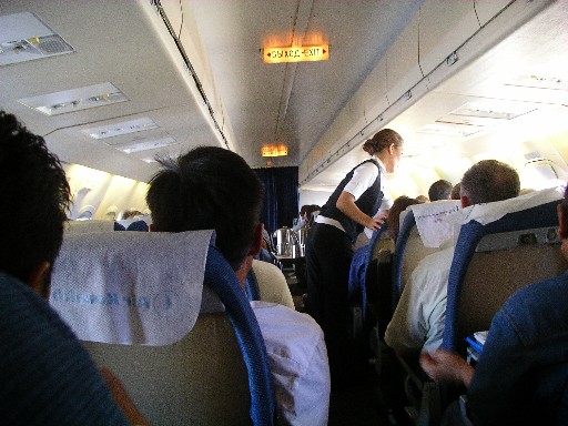 待合室で搭乗時間を待ち、時間になると係員の人が飛行機まで案内してくれた。途中、ゼミ生の一人がカメラで空港の様子を撮影しようとしたところ、係員に止められフィルムを渡せと要求された。だが、デジカメだからフィルムはない。ディスプレイの「No Disk」という表示を見せると、どうにか納得してくれたようだった。海外では軍事機密の保持のために空港や鉄道の写真撮影を禁止しているところが多いと聞いたが、これほど厳しいとは、と驚いた。