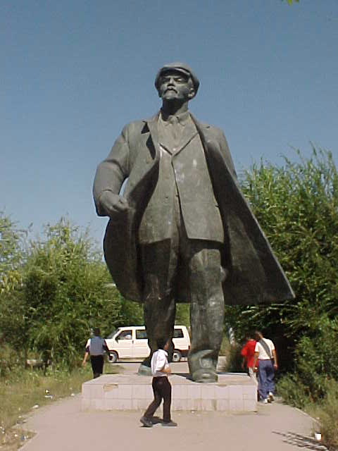 ここに向かう途中、たまたま通りかかった裏通りの茂みの中に、われわれは巨大なレーニン像を発見した。ガイドによると、この像は元々大通りに面するテンギスシェブ石油本社ビルの横に立てられていたそうだ。旧ソ連諸国でレーニン像への対応を観察することは大変興味深いことである。キルギスのビシュケクでは。レーニン像が、われわれの訪問したつい一週間前に大通りから裏通りに移動され、それが物議を呼んでいる。アルマティでは、レーニン像は一体も見ることができず、恐らくはすべての公園・広場から独立後に撤去されたのではないかと予想される。ここアティラウでのレーニン像は無残にもたくさん落書きされていたが、一応壊されることなく残っていた。