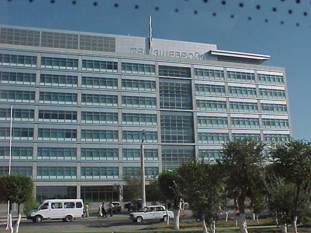 時間がなくなってきたので、博物館見学を切り上げ、テンギスシェブルオイルの本社ビルを訪問した。本社は、空港からホテルへ行く途中に見た、市中心部のガラス張りの高層ビルである。アポイントメントをとっていなかったのだが中に入ることができ、受付カウンターに並べられた、テンギスシェブ石油の企業情報パンフレットをいただいてきた。パンフレットの表紙には、「環境を責任をもって保全しながらコミュニティに繁栄をもたらすテンギスシェブ石油」と大きく書かれていた。内部は整然としていて、入り口付近を巡回していた数人の警備員が我々を胡散臭そうに注視していた。大変セキュリティが厳重な印象を受けた。飛び込みで訪問したため館内の見学はできなかったが、是非とも石油開発現場に携わる人にお話を伺いたかった。