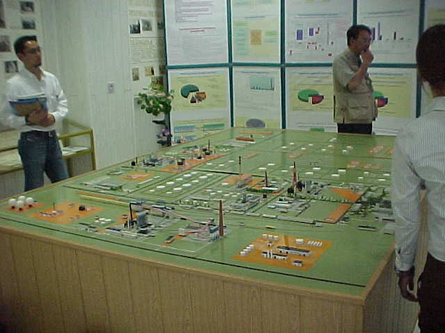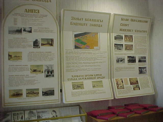 われわれが訪問した製油所は、5平方kmという広大な敷地を有し、第2次大戦中の1943年、ソ連国家防衛委員会の指示により「レーニン製油所」として、対独戦の前線を避けてこの地に設置されたものである。ソ連解体後に、カザフスタン政府の国策企業、カズムナイガスの「アティラウ製油所」として民営化された。もっとも、同社の株式は公開されておらず、そのほとんどが政府に握られているため、この工場は完全に民営化しているとはいいがたい。社会主義時代は、年間5百万トンの石油を精製して、ソ連中央政府からのノルマを超過達成する、全ソ連の中でも屈指の優良工場だったようで、展示室には、ソ連時代の表彰状やメダルなどが、所狭しと誇らしげに飾られていた。だが、50年間使い続けた設備は大変老朽化しており、オペレーションの効率も悪いという。そのため現在施設の改修工事が行われておいる。これに携わっているのが、アルマティの三井物産で伺った、丸紅、JGC(日揮)、JBIC(日本国際協力銀行)が中心的な役割を果たす、このプロジェクトである。JGCの秋田様、飯島様、そして現地の工場長の方にお話を伺い、その後意見交換させていただいた。