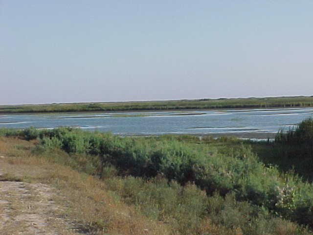 一日の最後に、カスピ海の湖岸まで行った。カスピ海というと目前に水平線まで広がる青い水面を想像するかもしれないが、実際見られたのは、地平線まで広がる広大な湿地帯であった。カスピ海は年によって海岸線が変化するので明確な線が断定できない。よって「いわゆるカスピ海」を見るのは、残念ながらここアティラウでは不可能なのである。現在カスピ海の湖面は上昇傾向にあり、いずれアティラウが水没してしまうというリスクも、完全には否定できないだろう。