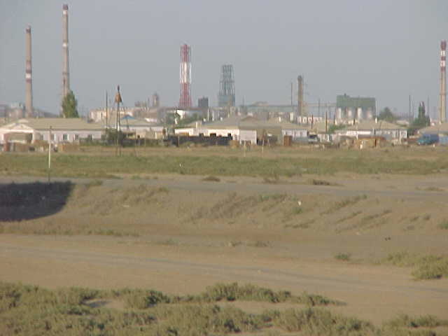 到着したグリーンホテルは、この巡検中で泊まった中で最も豪華なところだった。外装はプレハブに文字通り緑の塗装をしただけの簡素なものだったが、宿泊料は、ツイン1室が1泊120米ドルと先進国並みであり、内装は西洋風にアレンジされて豪華さと清潔感があった。経営者はインド人だそうで、受付の人は英語と少々の日本語も話せた。恐らく、おもな宿泊客は西側の資源開発関連企業のビジネスマンだろうと考えられる。われわれは、荷物を置いて、最初の訪問地、アティラウの製油所へ向かった。
