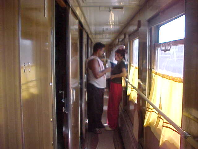 期待していた食堂車は連結されておらず、駅で商人から買うしか食料の調達の方法はない。幸い、ホテルでプラスチックバッグ入りの相当食べ応えのある朝食を用意してくれたので、これで腹ごしらえはできた。しかし、乗車前にもっと飲食物を買って持ち込むべきだっただろう。