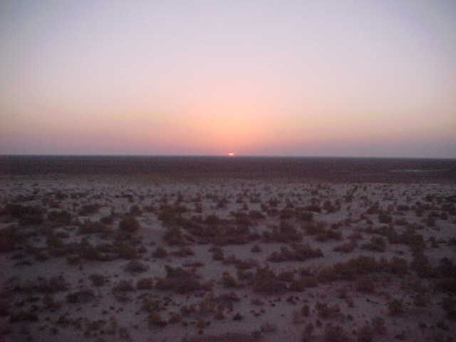 やがて、日本では滅多に見ることのできない地平線の彼方から、朝日がゆっくりと昇ってきた。太古からほんの30年前まで、この同じ場所からの朝日は、広大な湖の水平線のかなたから昇っていたはずだ。われわれは、日の出を拝み、モイナク中心地に向かった。