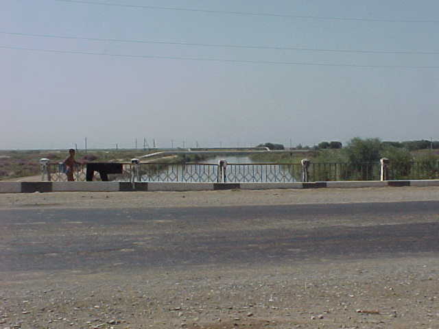 ヌクスに着く手前で、アムダリア川の橋を渡った。大河にしては、思いのほか川幅は狭く、水量は少ない。