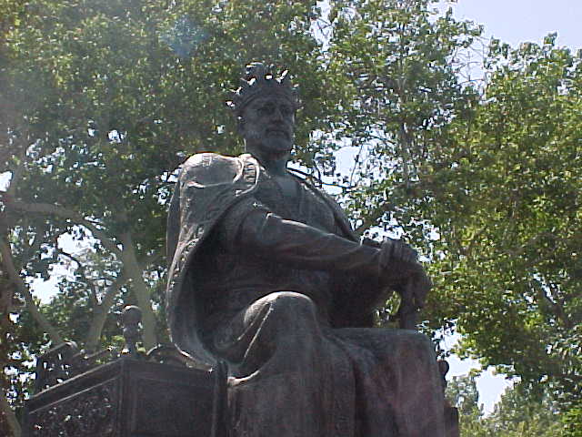 そこから5分くらい歩いて、ティムール像を見に行った。像は、ロシア帝国時代に計画的に建設された新市街部分のかなめに建っている。像のある場所からまっすぐ、中央分離帯が細長い緑の公園状の幅広い「大学通りUniversiteti」が南西に向かい、他の主要街路は、この広場を中心に放射状に広がっていた。とっても大きなティムールは、足に肘をたてて座っていて、遠くを見ているようだが、どこか優しそうな顔つきであった。