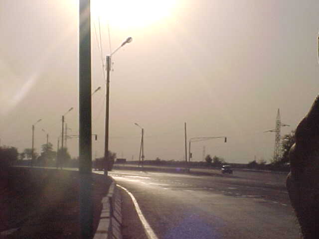 またしばらくいくと、今度は大きな、われわれからすると合流点にさしかかった。これも、このわき道とソ連時代の幹線道路の分岐点である。見ていると、カザフスタン領側へ行く車は少なく、たいがいはウズベキスタン側へ行く。ちなみにわれわれがカザフ領を通ってタシケントへ行こうとした場合、ヴィザが必要となる。このように、複雑に込み入ったソ連共和国の境界線をそのままにして各共和国が独立したことは、交通の障害という新たな問題を作り出した。このような状況は他の場所にも多数ある。独立の負の側面と言えるであろう。