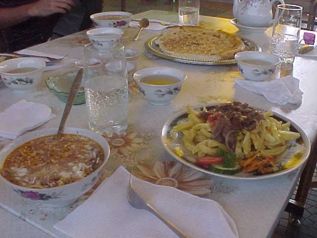 コーカンドの街のレストランで昼食を取る。ここでボルシチやナン、ビーフストロガノフを食べた。食事と一緒にとる飲み物として中央アジアで一般的なのは、チャイだろう。チャイとは紅茶のことであるが、中央アジアではとても安い価格でチャイが飲める。そしてこれが日本で飲むものとは比較にならないほどおいしい。硬水と軟水の違いなのかもしれないが、とにかくおいしかった。このレストランでお会計を済ませようとすると、1500スム(約180円)ほど多めに要求された。ただの計算間違いかもしれないが、このようなトラブルを避けるためにも、自分できちんと金額を確かめることが重要である。