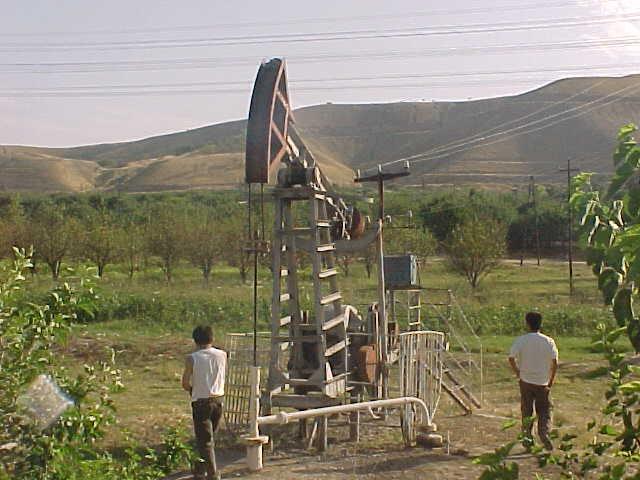 13:55、アンディジャンに向けて出発する。米作地帯を抜け、アンディジャンに近づくと一戸建ての民家が目立つようになってくる。 アンディジャンは、車の中から見た感じでは、大きなビルが立ち並んでいるというほどではないが、周辺の油田地帯の中心としての機能を果たす、結構活気のある街である。アンディジャンから国境へ向かう途中の道路沿いにも、小型の油井が立ち並んでいた。畑の中に点在するその機械は電気で動いていたが、稼動していないものも多く見られた。なぜ稼動していないのかはわからなかった。石油が枯渇したのだろうか、もしくは機械の老朽化が進んでいるのだろうか。