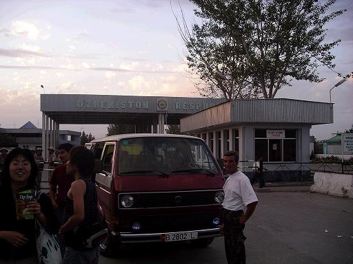 15分ほどしてパスポートは戻ってきて、その後もう一度軽くチェックされた後、われわれは自由となった。ちょうど国境線のところで、ウズベク側からウズベキスタンの兵士が、「一緒に写真を撮ろう」などと女子学生をひきとめていた。だが、国境地帯は写真撮影禁止の規則であり、何か罠にはめられるといけないと思い、その場を去ることにした。