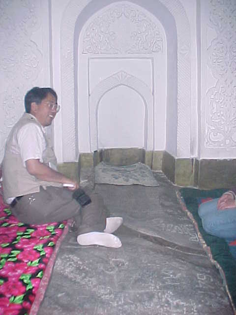 この博物館も、入場料150COM,1ショット10COM という値段設定で、われわれは入場料のみ払って中に入った。内装は、本物の洞窟の中に博物館を作っただけあって壮観だった。ゾロアスター教の拝火の台があり、また天井がソ連のマークである星型になっている、絨毯にキルギス共産党と書かれてあるユルトの展示があった。