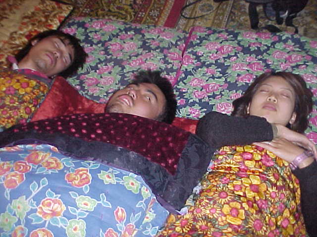 今晩の宿は、外見は少し古臭い一軒家だったが、中に入ってみると、本棚、立派な椅子やテーブルや派手な内装のダイニングルーム、そしてユルトのような内装の寝室などがあって、結構豪華であった。居間には、ソ連時代のいろいろな表彰状のようなものが置かれていた。かつては、地元の共産党の関係者だったのかもしれない。しかし、休む暇もなくわれわれは、町外れの農家に聞きとり調査に行くため、すぐに車に乗り込み出発した。