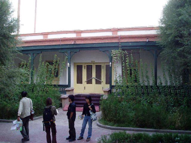巡検の最後に、元イギリス領事館の建物にほど近い場所に建つ、もう一つのグレートゲームの跡を視察した。これは、色満ホテルの裏庭にある、1890年から1958年までロシアの領事館として使用されていた建物である。元イギリス領事館とちがって、こちらは、入り口の門から、付属の建物に至るまできちんと保全され、案内看板もあって、内部を参観することもできた。建物は、イギリス領事館と比べると重厚で、暗い感じがする。