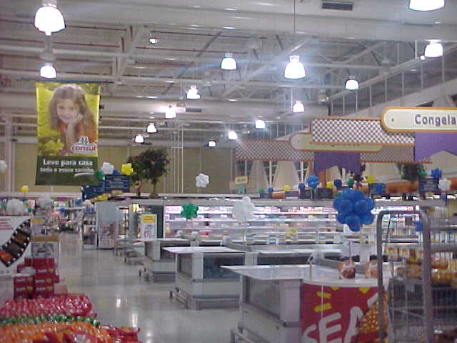 最後にコン・スル(Con Sul)というショッピングセンターに立ち寄る。一見普通のショッピングセンタ ーだが、ここも、企業組織の一部になっていた。日本の会社生協のように、ここでウジミナス製鉄社員は、 給料から天引きで買い物ができる。ここ以外にもチェーン店舗があるという。ほとんどの店がすでに閉店し ていたが、交渉の結果特別にスーパーに入れてもらえることになった。ここまでの旅で、ブラジルの物価は びっくりするほど安くないという印象を受けていたが、にんじんが1kgあたり1.39レアルと、生鮮食料品に関 してはとにかく安い。ウジミナスの社員は、このスーパーを利用することで、多少賃金は低くとも、生活費 を安く上げられるというわけだ。焼きそばや味噌など、日本製品も多くならんでいた。最近は日本食ブーム らしい。電気製品はほとんどがマナウス(Manaus)から入ってきていた。