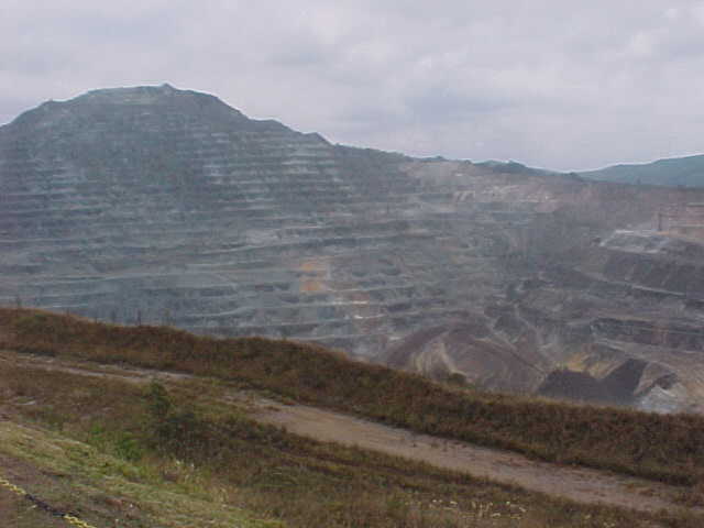通常、鉱物の採掘はトンネルを掘って行われるが、大量の鉱石が地表近くにあるここイタビラ鉱山は、す べて露天掘りだ。展望所から見渡すと、山全体が階段状に整地されている。町がすぐ近くにあるため、掘れ る深さに限界があるようだ。奥のほうにはもっと多くの資源が眠っているといわれている。高校のとき、地 理で一生懸命勉強したイタビラ鉱山に今われわれがいるのだと思うと、感慨深かった。