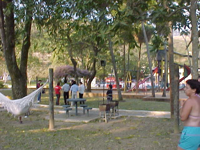 公園はのどかに日曜の昼下がりを楽しむ人々でにぎわっていた。プールが隣にあるためか、水着姿のまま の人が多い。利用者が持ち込んだハンモックがあちこちに吊るされている。すべり台など子供向けの遊具も 豊富だ。ここのプールで、オリンピック選手が練習していたこともあるらしい。キューバからコーチを呼ん で練習していたそうだ。他にも陸上の選手もここから出たことがあるという。公園の隣にはバーベキュー場 。ここはウジミナスの社員の交流の場となっている。こうして社外での付き合いも企業が用意することで、 労使関係の安定をはかるという日本型パターナリズムが、この施設のありさまに色濃く反映されている。整 備された子供向け遊具は、父親がバーベキューをして社内の人間関係を築いている間、子供を「厄介払い」 する場でもあるともいえる。