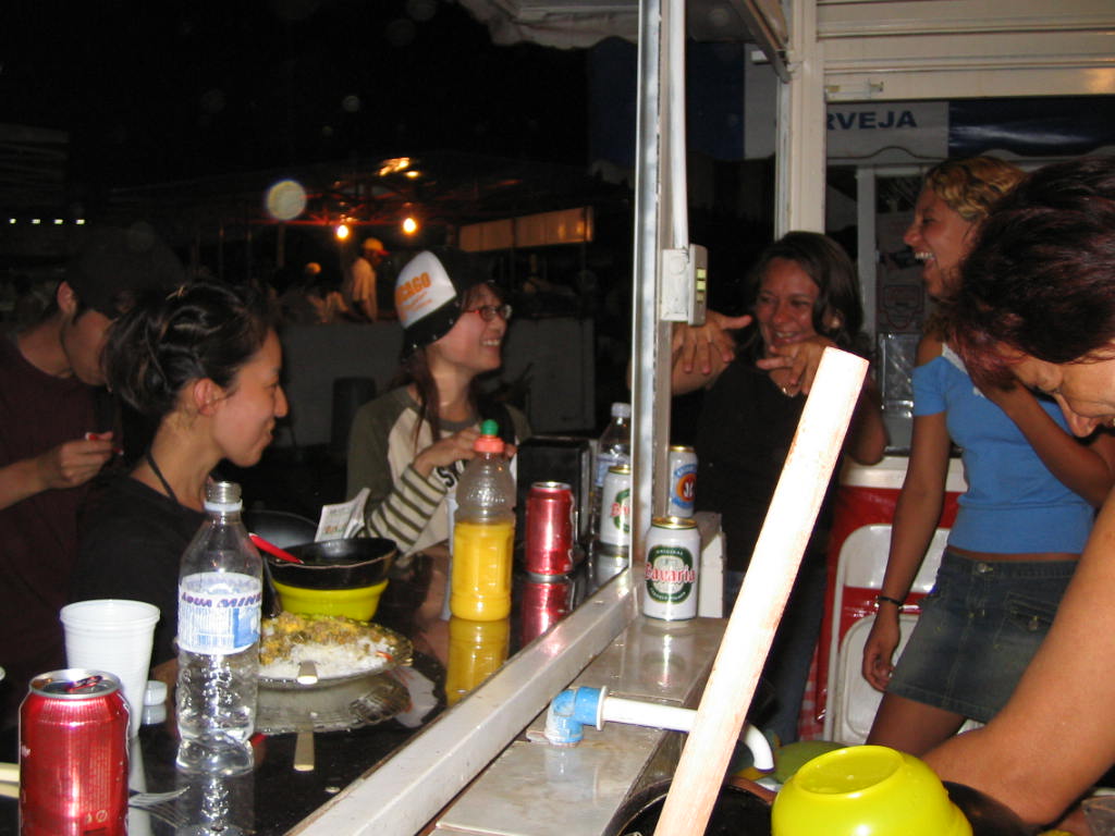 お土産を買ったり、大道芸人のパフォーマンスに参加したりしたが、まだ時間は有り余っていた。 仕方なく、芝生に座り込んで無為な時間を過ごす。 ようやく夕食の時間になったので、屋台のあった辺りに戻ってみた。 ある屋台のお客さんが英語をしゃべることができ、親しくなったわれわれはその屋台で夕食にした。 アマゾン料理の屋台らしく、好みの分かれる味だった。