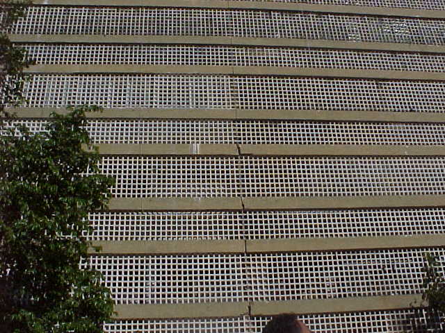 集合住宅の裏側に回ると、外観が格子状になっている。