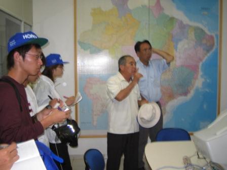 早朝、5時30分頃、ルイス・エドウアルド・マガリャンエスに着く。この村は、バイーア州の西の州境から東に延びる、メストレ台地のちょうど中央に位置する。バスから降りると、旅行社の手違いで予定より遅れ、まだ暗い早朝から30分も多くお待たせてしまうこととなったにもかかわらず、堀田良介さんと新田さんは私たちを暖かく出迎えてくれた。