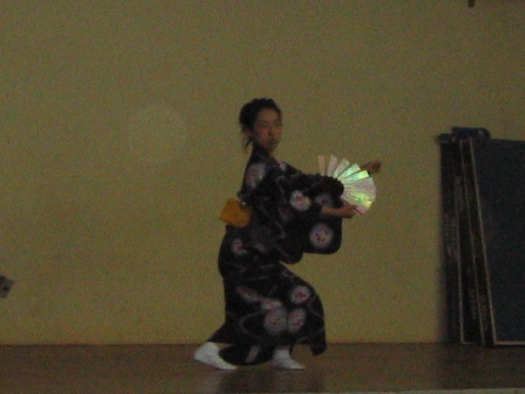 お礼に藤目さんが詩舞を披露する。日系人会館の観客約30名からアンコールがあり、今度は動きの意味を解説しながら、再披露。ゼミテンも、動きの意味を聞くのは初めてなので興味津々である。