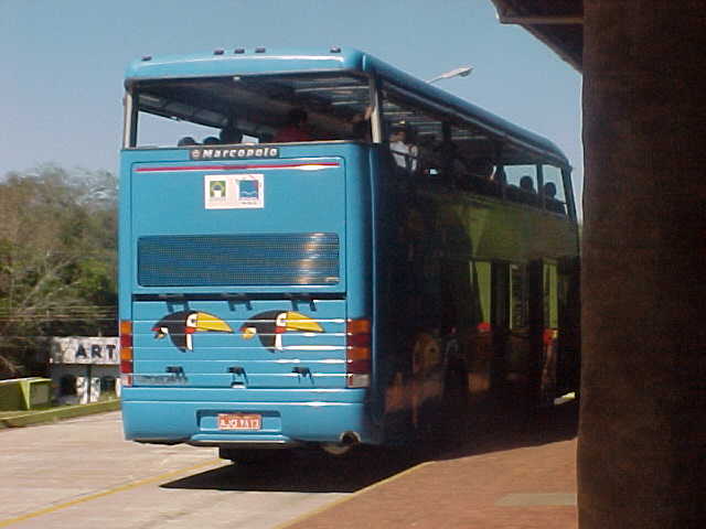 外が明るくなって目が覚めると、バスは広い草原を走っている。所々の町でこまめに停まりながら、終点のフォスドイグアスをめざした。早朝のパーキングエリアには、メルコバスというロゴと、近隣諸国の国旗が書かれたバスが停まっている。メルコスール4ヶ国を走るのだろうか。この2週間あまり、ブラジル各地を回ってきたが、南米の近隣諸国との関係や相互に与える影響をここでは肌で感じる。国境に近い地まで来たことを実感した。