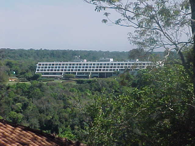 白いバンが緑の中を行くこと10分、滝の入り口に到着。正面にはVARIG系列のトロピカルホテルがあった。公園内にわりと調和している。元は大統領の別荘だったらしい。公園内にある唯一のホテルということで、立地状況は最高であった。このようなたくさんの観光客の目に触れるところに民族系資本の高級ホテルがあれば、ブラジルは国力を示すことができよう。