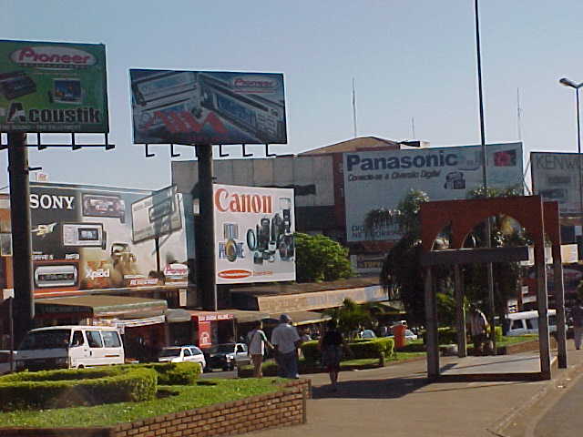 緑の中に、多数の近代的な高層ビルがそう広くない地帯に固まって建っており、この都市が経済的に潤っていることを伺わせた。この国境の都市では、中国・韓国・アラブ人などの手によって関税を突破して、生活水準の高いブラジルへの密輸が行われているそうだ。一方で免税の町として、ブラジル・アルゼンチンから時計やカメラ、電気製品などを求めて買い物客が多くやってくる。もともと関税が安いパラグアイ側も、これによって地域経済が活性化している。これらの人々のため、モスクや中国寺院もあるそうだ。そして、この町の更に向こうには、日系人が多く住む町がある。