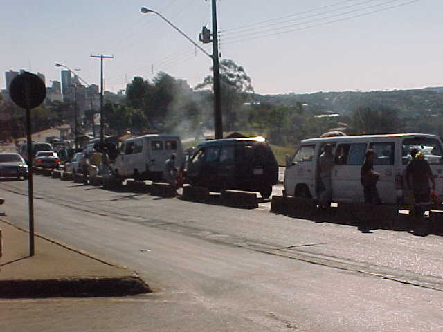 この日最もゼミテンの意気が揚がっていたのは、イグアスの滝でもイタイプダムでもなく、ここではなかったかと思う。ダムから三国国境地帯へ向かう車の中、右前方に見える緑の中のビル群は、パラグアイの都市、シウダーデルエステである。うとうとしていたゼミテンもぱちっと目を覚まし、勿論今までの人生で初となるパラグアイを窓にはりついて観察した。パラグアイは、長い間ナチの残党であるドイツ系のシュレスナーによる独裁政権が続き、この街もその人物の名で呼ばれていた。独裁政権崩壊後、地名が変更されている。