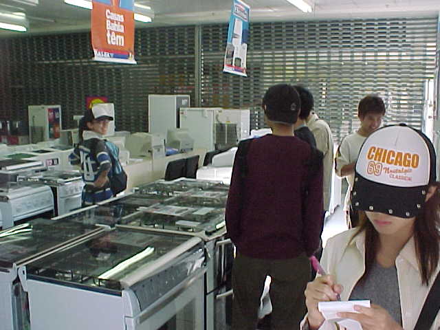 電車をサンタクルス駅で降りて、公園行きのバスを先生が探してくれている間に、私達はたまたまそばにあった電器屋に涼みがてら冷やかしに入った。メモをいそいそと取る明らかに怪しい日本人に店員はかなり警戒している模様・・・。調査の結果、洗濯機は1000レアル前後、冷蔵庫1500-3000レアル、パソコン2000-2500レアル、テレビ700-1200レアルと、R$1=40円として計算すると、日本と比べて単純に比較すればそれなりに物価は安い。外資系企業の製品がほとんどで、PhilipsやGeneralが多かった。他にはLGやMitsubishi、Sony、Panasonicもきていた。また10回以上の分割払いが主流のようで、分割の値段は、一括払いの20-30%増しになっている。これも後から分かったことだが、服など多くのものが分割払いで購入できるようになっている。その場合一括と分割の値段に差は全くない。これにより、金銭的余裕のない人も高額な商品にも手が届く。また店の営業時間はだいたい9:00~20:00のようだ。