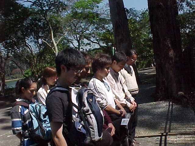 イビラプエラ公園到着。とても広い公園で、芝生に寝転がっている人もいれば、ランニングで汗を流している人など、優雅に時間を過ごしていた。私達はサンパウロ日系人先没者記念碑を参拝しに来たのだが、着いてみると、日本館は残念なことに休館日だった。日本館は、水曜、土曜、日曜しか開館していない。このため、黙祷だけ捧げて解散することに……と思ったら、水岡先生の「誰か人がいる!」という声が遠くから聞こえてきた。無理にお願いして、入場料を払い、開けてもらえることになった。