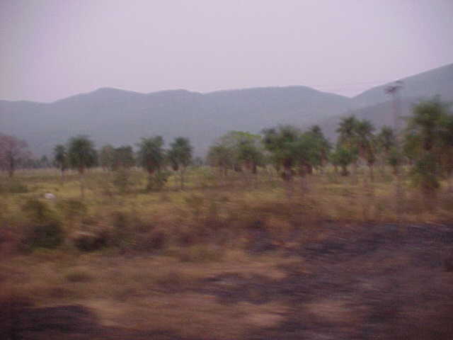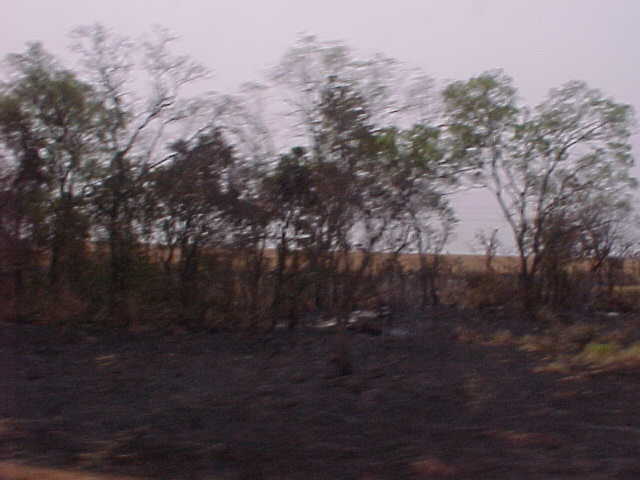 10分ほどすると町の郊外にでる。郊外に出ると、廃墟となった工場が見られ、またあたり一面に焼野原が広がっていた。つい最近、人工的に焼き払われたものと思われる。