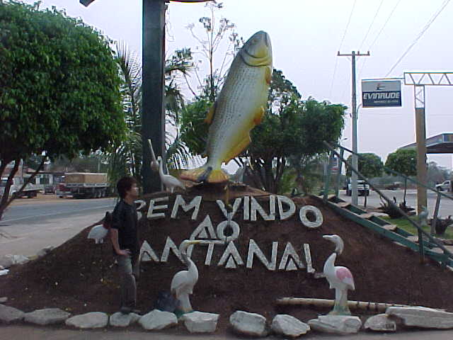 2時30分頃、休憩地であるミランダという地名のところについた。この町に入り口には、「パンタナールへようこそ!」という内容の大きな看板があった。ここでは15分の休憩である。おみやげ物屋が数軒・ホテルなども数軒あり、観光の拠点であることがわかった。また、バスターミナルには、パンタナールに向かうエコツーリズムの観光客を待ち受けるバスが何台も停車していた。