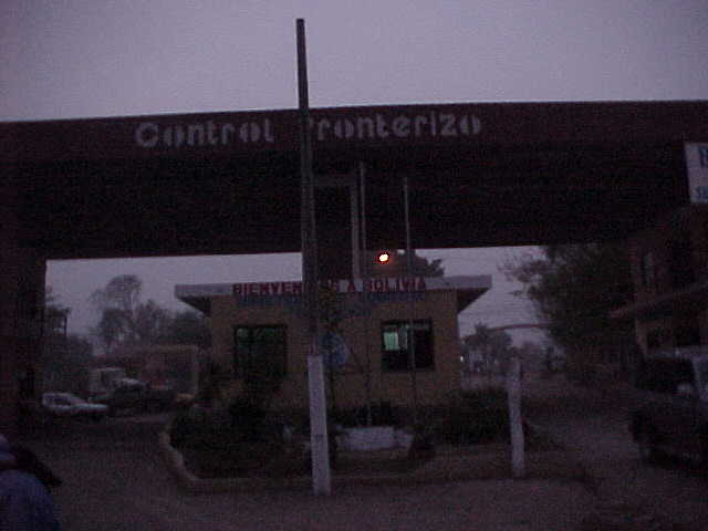 実は、越えた小川が国境だったのだ。普通、陸路の国境は厳重に警備されており、検問・税関などの出国審査と、その後の同様な入国審査を受けて、初めて通過できるものである。ところが、ここの入国・出国管理の建物のブラジル側には元々誰もいないし、ボリビア側も時間外で、係官が帰ってしまったようだ。このため、国境は、フリーパス状態となっていたのである。事実、たくさんの車が、国境検問なしで絶えず行き来していた。われわれも、それにならって、国境をいとも簡単に通過してしまったのである。